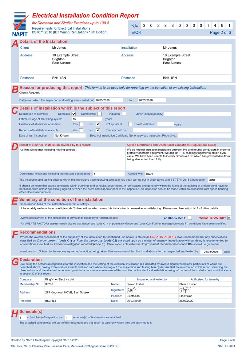 Example of a failed EICR test: