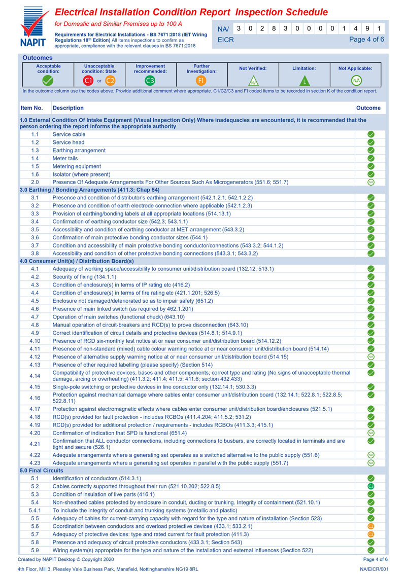 If any observations made had the following codes: Code 1,2 or FI (further investigation required) then your installation will be deemed as unsatisfactory.
